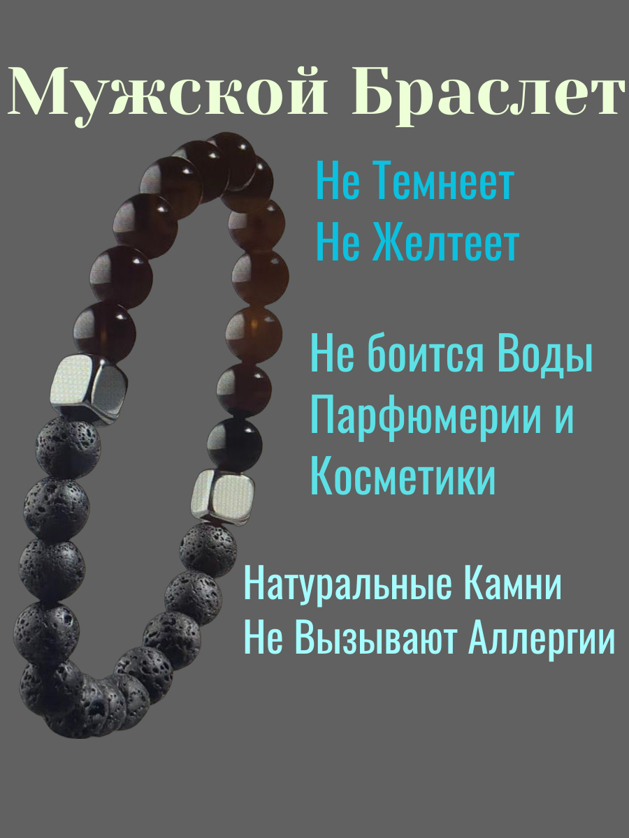 Мужской браслет на руку из агата, лавы и гематита, который станет не только стильным украшением мужчины, но и источником положительной энергии.