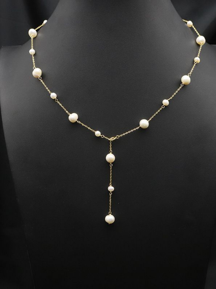 Элегантное изысканное колье - галстук с цепочкой и жемчугом искусственным — это стильный аксессуар, который станет прекрасным дополнением к любому образу.